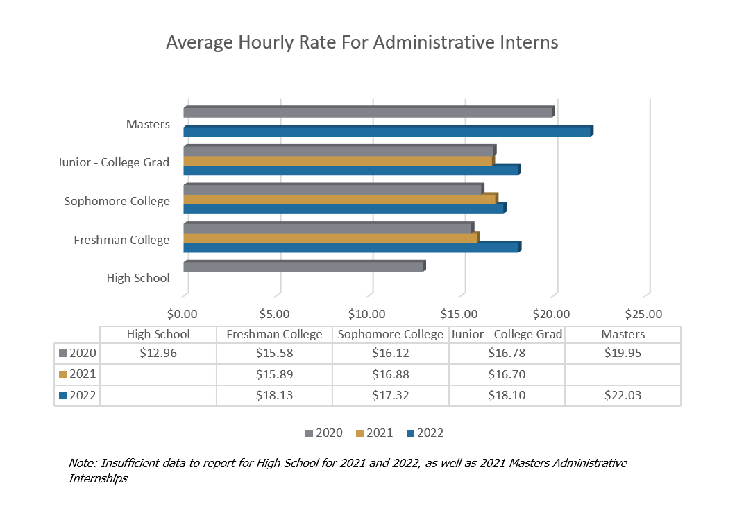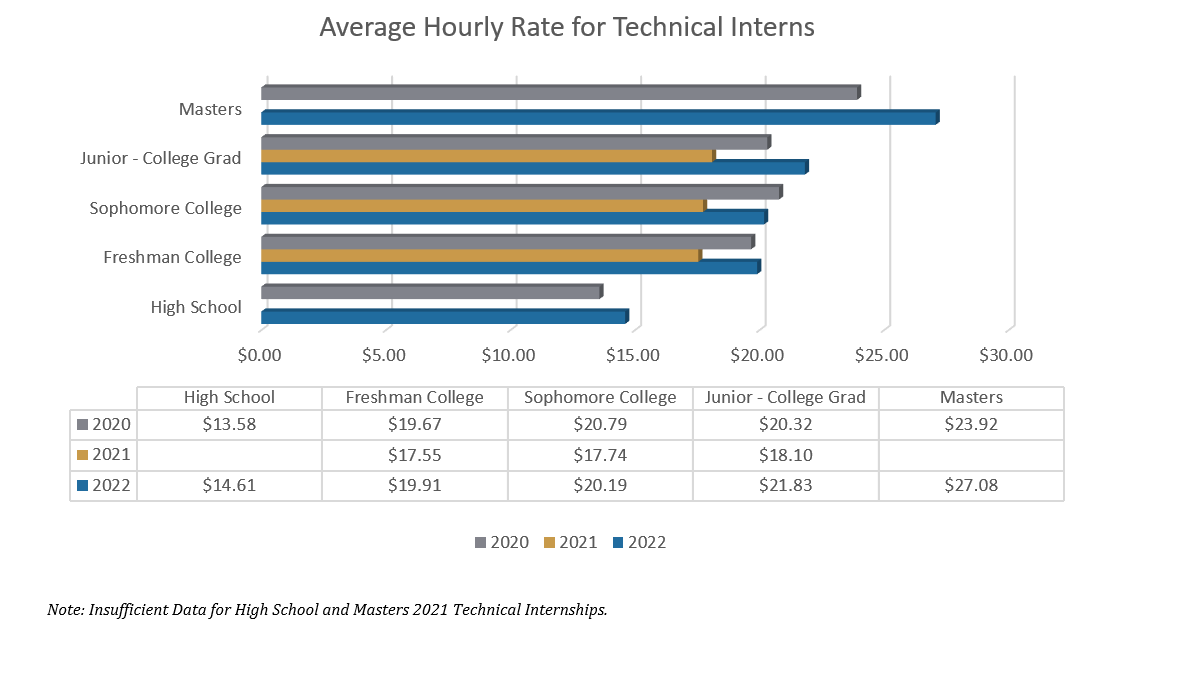In 2022, all starting rates for Technical and Administrative interns are higher than what was reported in last year’s study.